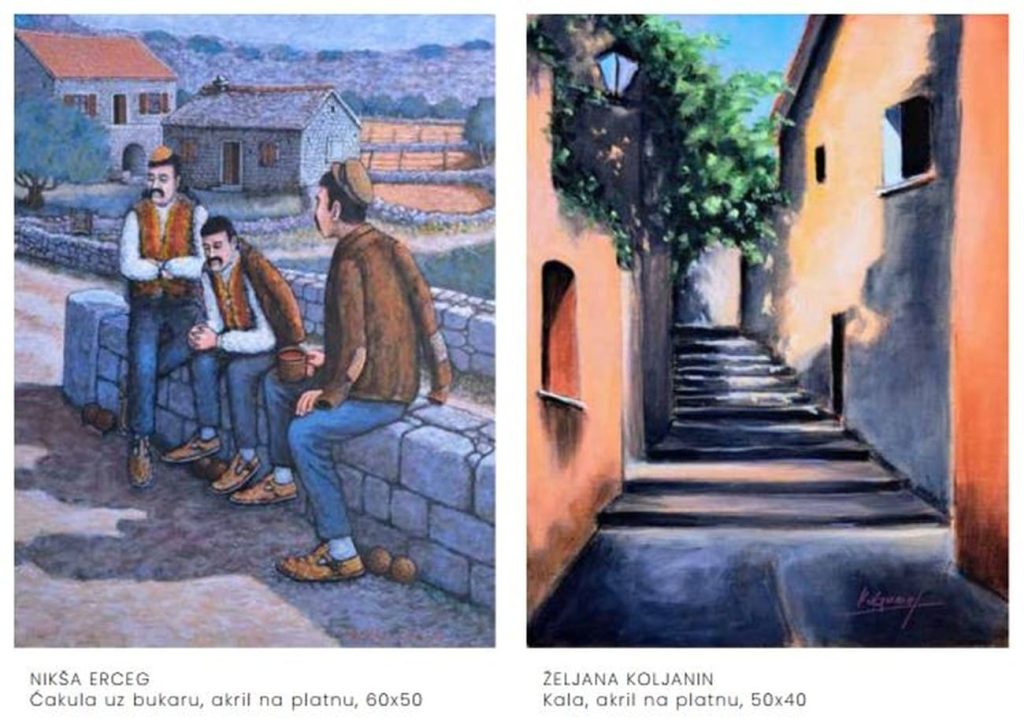 This association, with approximately 25-30 active members, compensates for its activities through participation in art colonies. Meeting other artists, especially from neighboring Bosnia and Herzegovina. or more precisely, to academic painters from the Široki Brijeg and Sarajevo academies. This contributes to the “richness and diversity of artistic expression” (quote from last year’s preface). There are also occasional painting events: painting and exhibitions in Gornji Dolac and Jesenice, humanitarian ones and donations of paintings in Makarska and Podaca. Participation in the International Small Format Exhibitions in Solin and Dubrovnik.